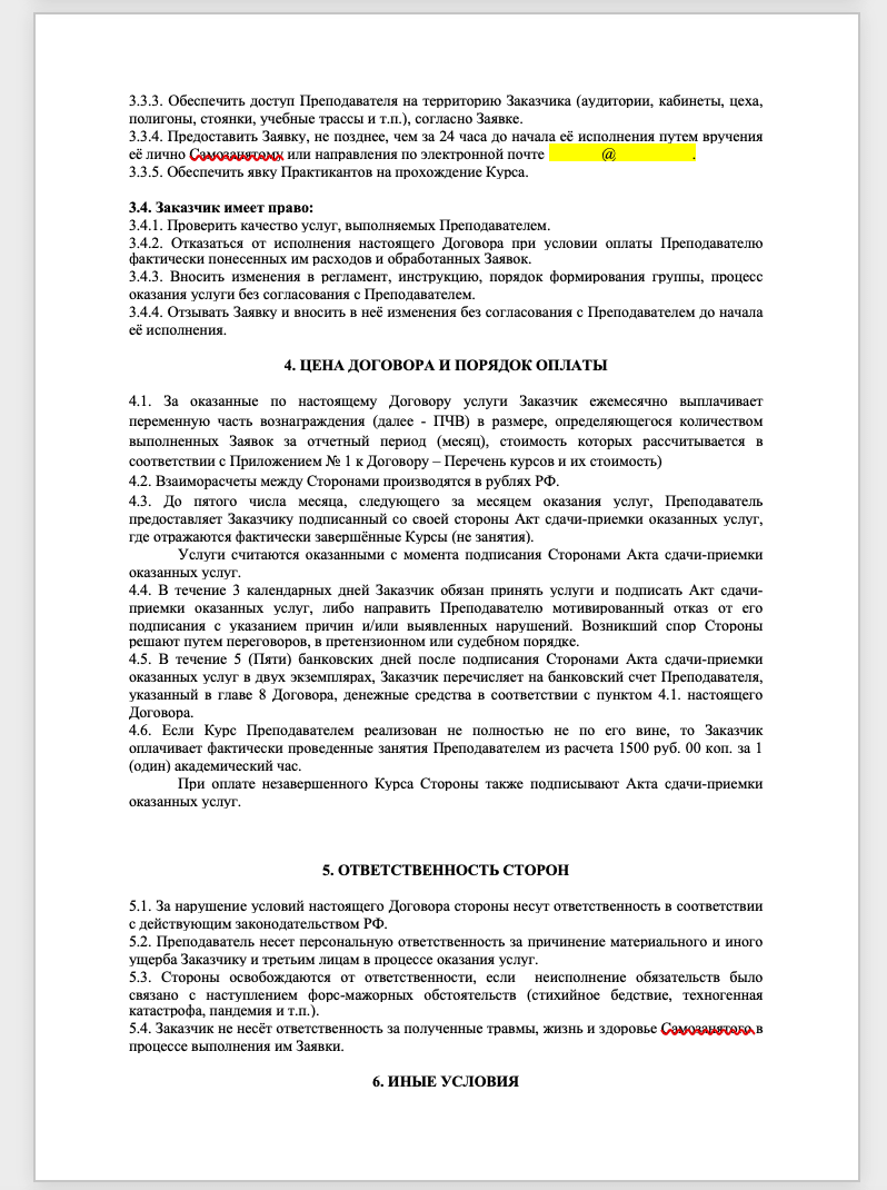 Шаблон договора станет доступен для скачивания после оплаты. Если нужно заполнить договор полностью под ключ, то перейдите сюда – Подготовка договора под ключ. На следующей странице вы сможете выбрать удобный способ оплаты: с расчётного счёта или по карте.   Если у вас есть вопросы, с нами можно связаться по номеру: Тел.: +7 (977) 847-67-65   Написать в WhatsApp Написать в Telegram Время приёма звонков: 10:00 — 19:00 по Москве