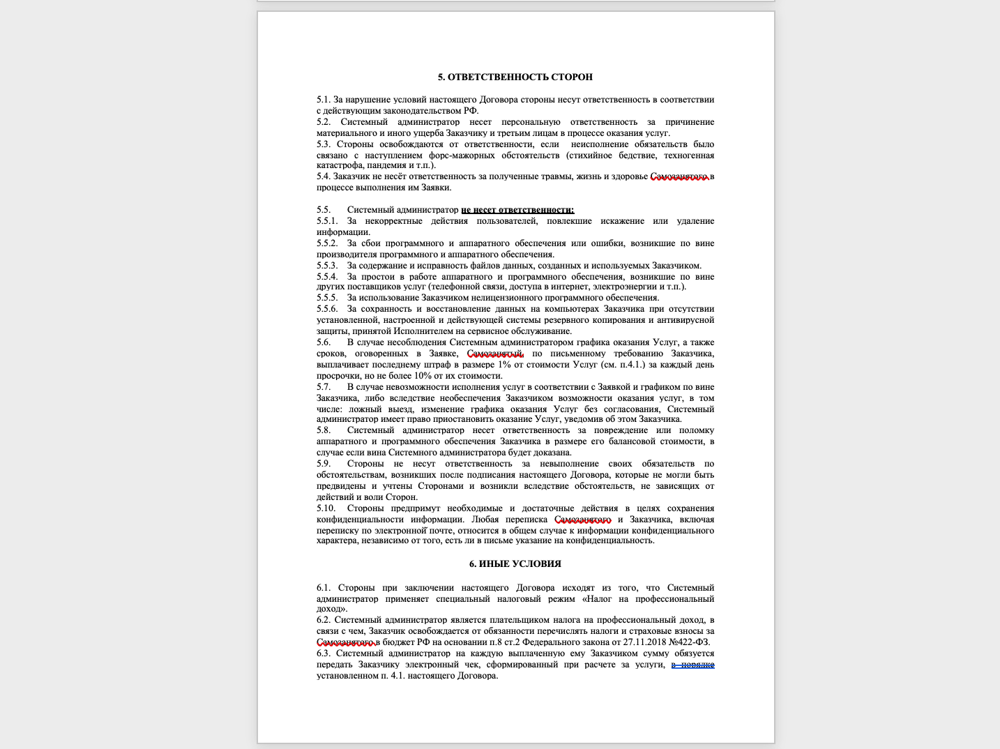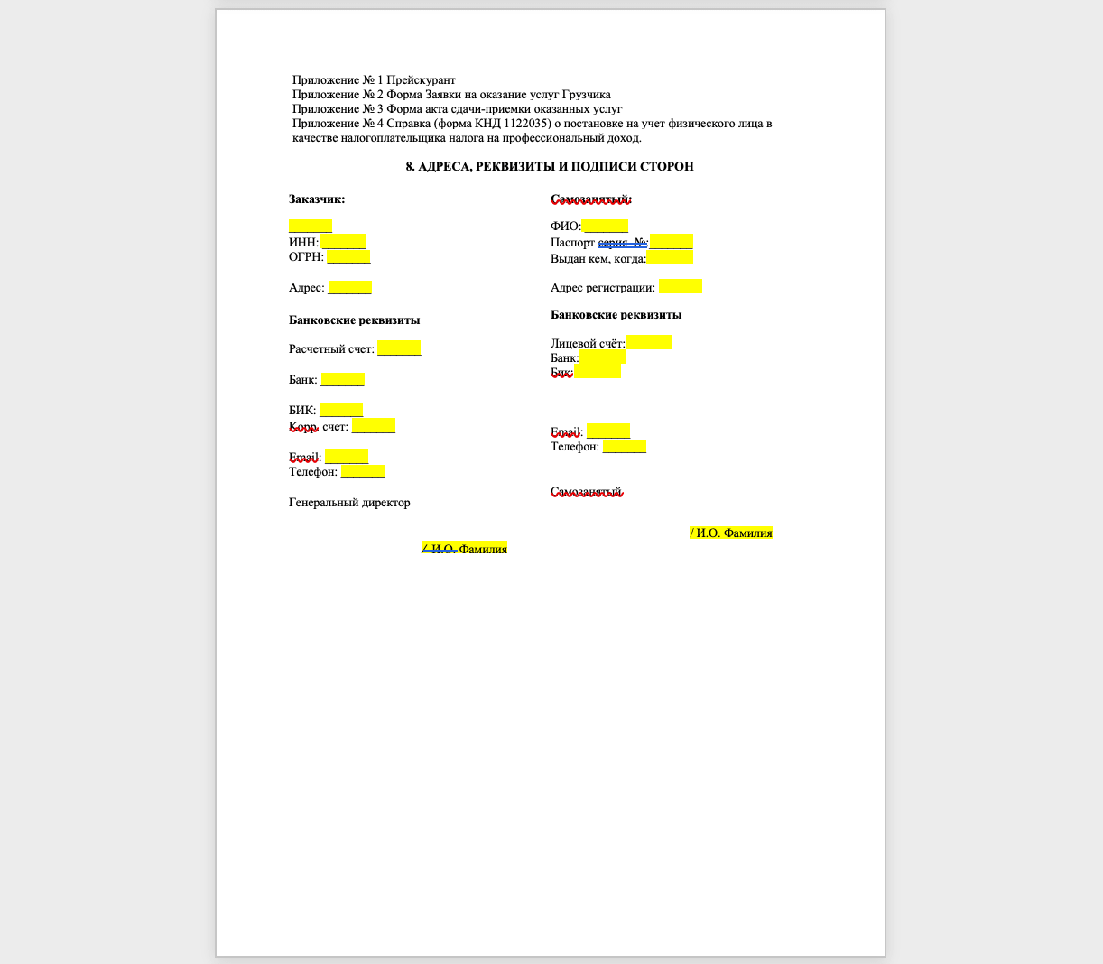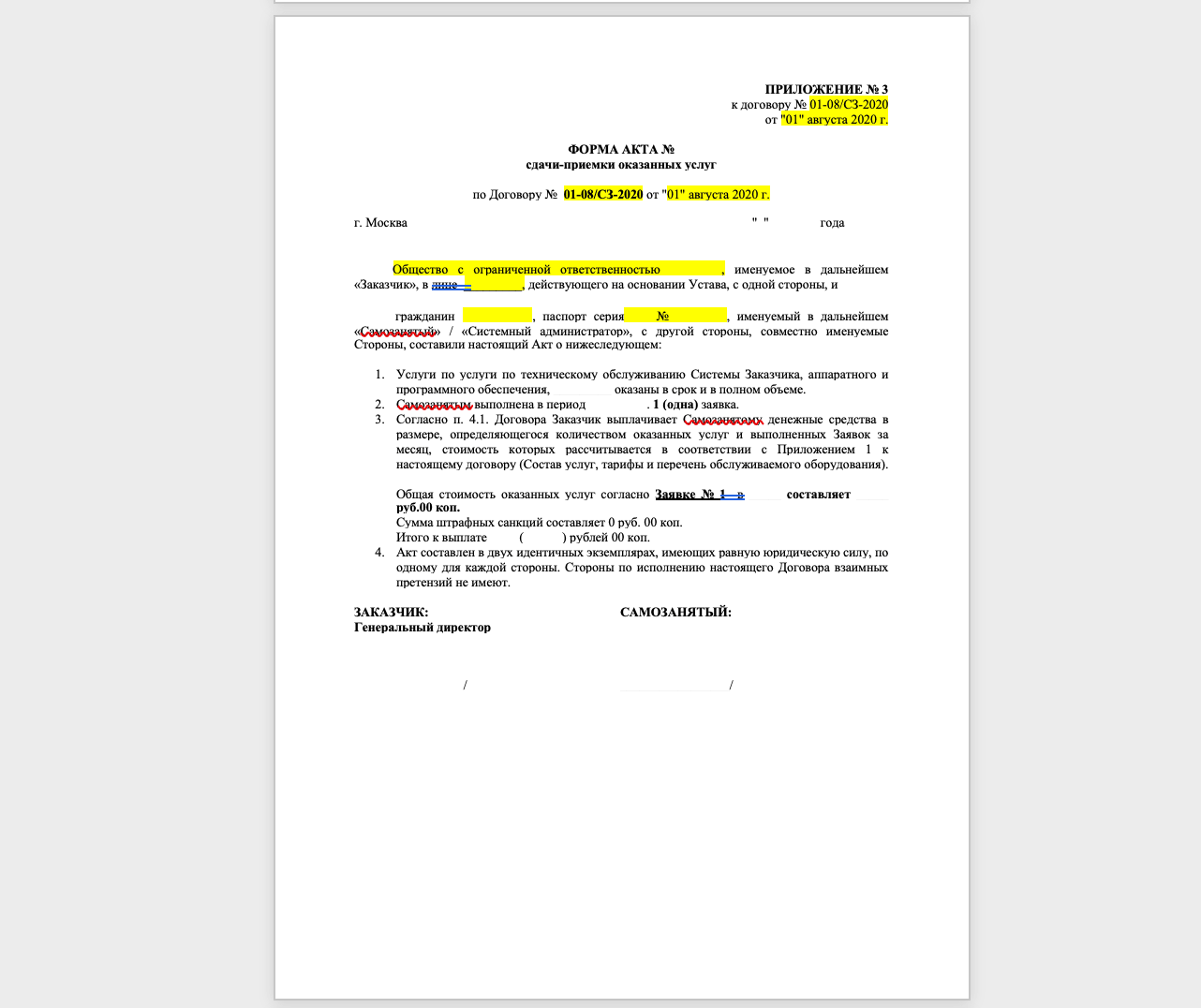 Шаблон договора станет доступен для скачивания после оплаты. Если нужно заполнить договор полностью под ключ, то перейдите сюда – Подготовка договора под ключ. На следующей странице вы сможете выбрать удобный способ оплаты: с расчётного счёта или по карте.   Если у вас есть вопросы, с нами можно связаться по номеру: Тел.: +7 (977) 847-67-65   Написать в WhatsApp Написать в Telegram Время приёма звонков: 10:00 — 19:00 по Москве